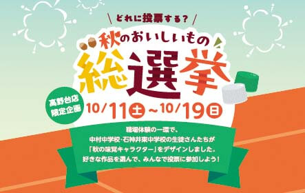 2025年10月11日(土)~19日(日)|ピーコックストア高野台店にて、中学生職場体験MIRAIZ「秋のおいしいもの総選挙」ペットボトルキャップ投票を開催!