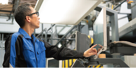 2020年と2024年、埼玉工場では新型オフセット輪転機を立て続けに導入。統合制御システムAIが損紙を低減することにより、生産効率が大幅に向上。また、その他各工程における機械設備も適宜刷新を進めており、製造にかかる環境負荷や作業者の負担軽減を推進しています。