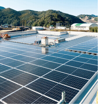 埼玉工場の屋上の太陽光パネル(2023年撮影)